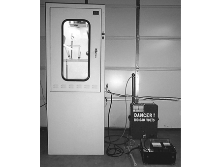 The GM022 is The VON Corporation’s most economical manual glove and sleeve tester. Units allow testing of gloves and sleeves. All machine adjustments are controlled manually, allowing maximum fl exibility for low-volume applications. A GM024 and GM026 model are available with 4 and 6 glove capacities respectively. The GM022 will manually test one or two lineman’s gloves or sleeves. The center-to-center spacing is 9 inches to accommodate 40 K.V. gloves.